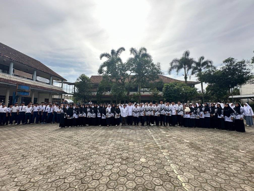 Ratusan santri dan dewan asatidz Pesantren Pagelaran memadati lapangan upacara pada Selasa (25/11/2025) untuk melaksanakan upacara bendera dalam rangka memperingati